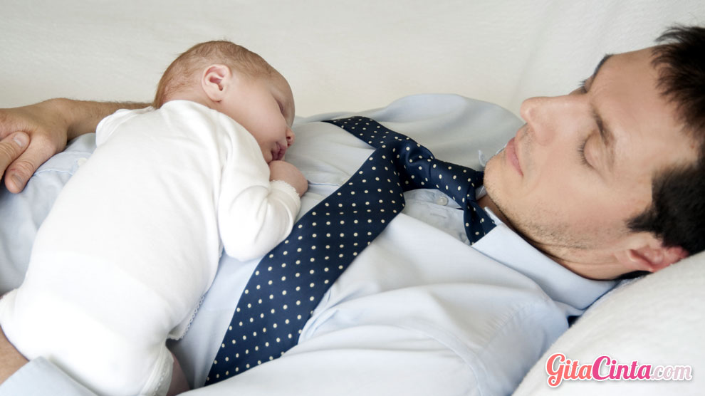 Bayi tertidur di atas perut ayah