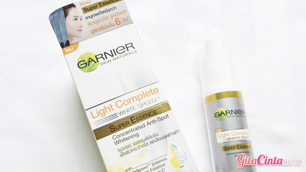 produk, brand, internasional, Garnier, untuk, menghilangkan, flek, hitam, noda, di, wajah, Light Complete, Super Essence, White Speed Multi-Action Whitening Serum Cream, kandungan, vitamin, C, cepat, terjangkau, cerah, sinar UV, ultraviolet, matahari, polusi
